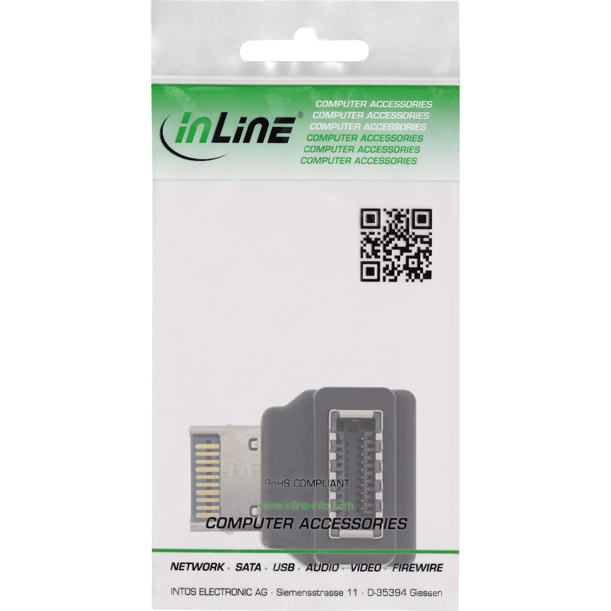 Preview: InLine® USB 3.2 Adapter intern, Frontpanel USB-E Stecker zu USB-E Buchse 90°