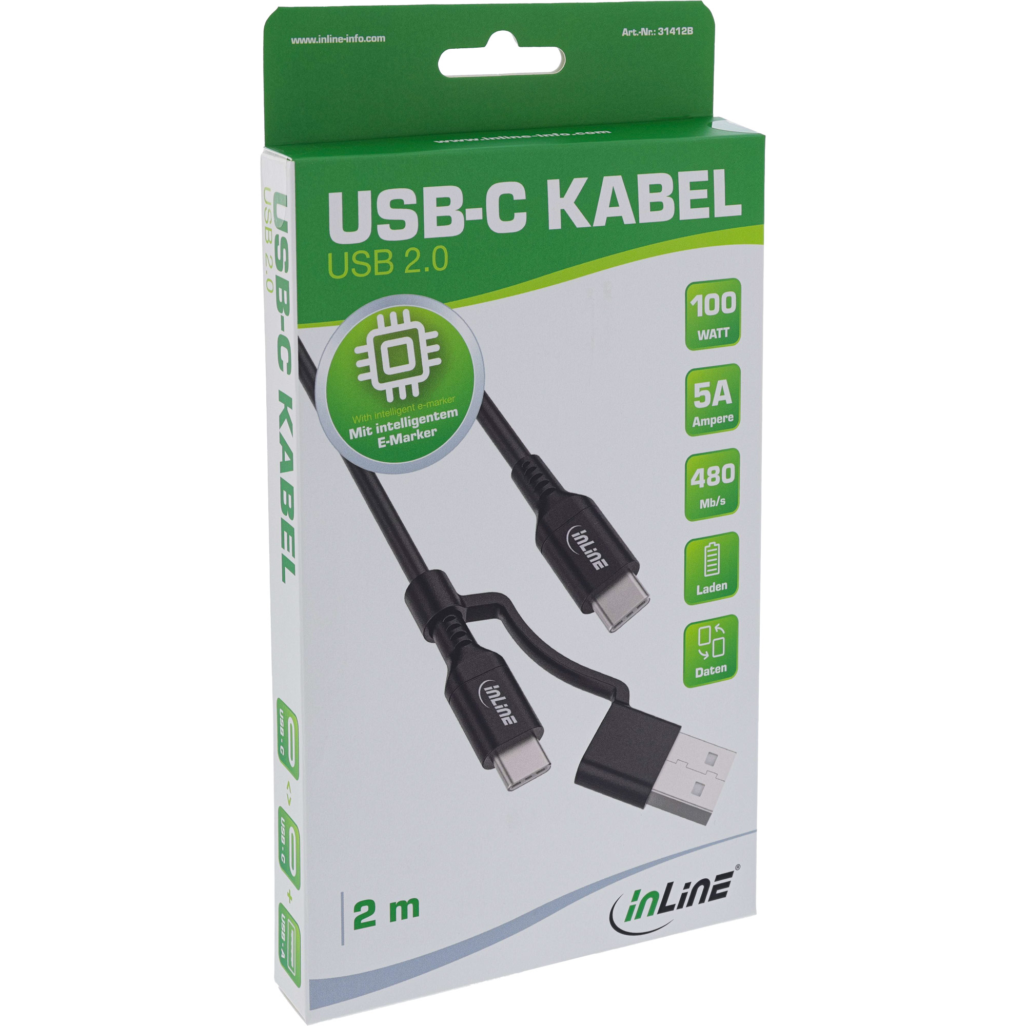 Das InLine® 2-in-1 USB-C Kabel bietet eine flexible Lösung für das schnelle Laden und die Datenübertragung moderner Mobilgeräte und Laptops. Mit einer maximalen Ladeleistung von bis zu 100 W und einem integrierten E-Marker Chip sorgt das Kabel für eine effiziente und sichere Energieversorgung. Der E-Marker erkennt automatisch die optimale Ladegeschwindigkeit für das angeschlossene Gerät und verhindert potenzielle Schäden durch Überspannung.