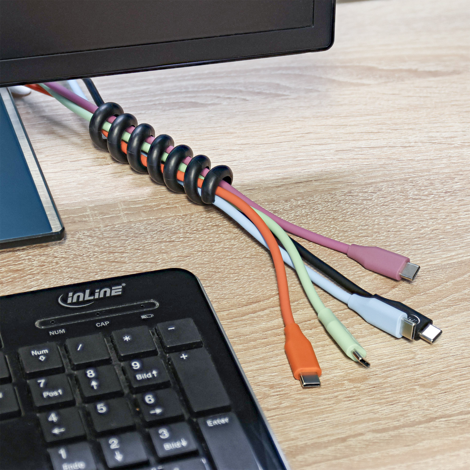 Die InLine Kabelspirale, 1-fach, im praktischen 5er Pack ist die perfekte Lösung für alle, die ihre Kabel ordentlich und griffbereit halten möchten – ob am Schreibtisch, unterwegs oder im Home-Office. Dank ihres flexiblen Spiraldesigns können Kabel unterschiedlicher Stärke sicher gebündelt und bei Bedarf schnell wieder gelöst werden.