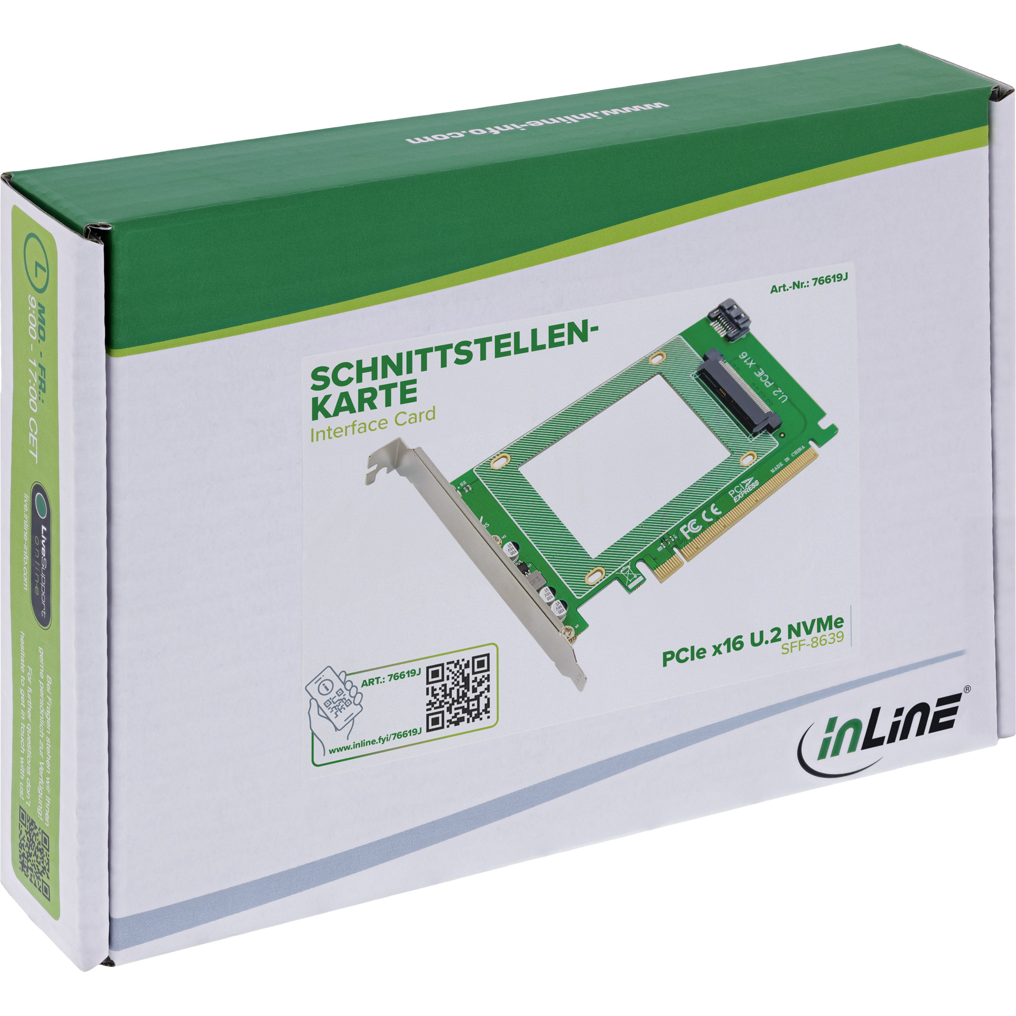 Die InLine® PCIe x16 U.2 NVMe Schnittstellenkarte ist die ideale Lösung für alle, die 2.5-Zoll-NVMe-SSDs mit U.2-Anschluss in bestehende Systeme integrieren möchten. Besonders in Servern, Workstations oder Hochleistungs-PCs ohne native U.2-Schnittstelle bietet sie eine einfache und zuverlässige Erweiterungsmöglichkeit.